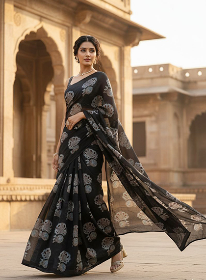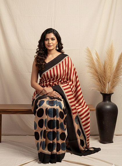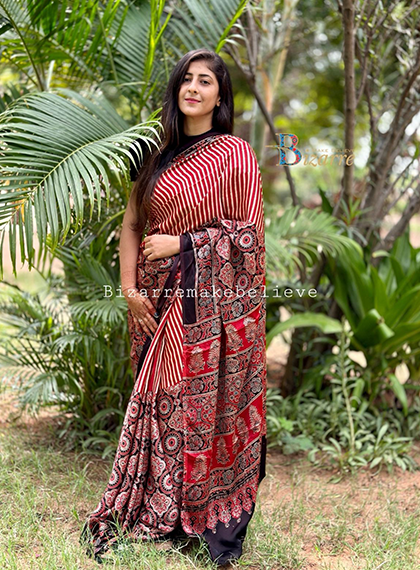 Finished Ajrakh Sarees & Fabrics