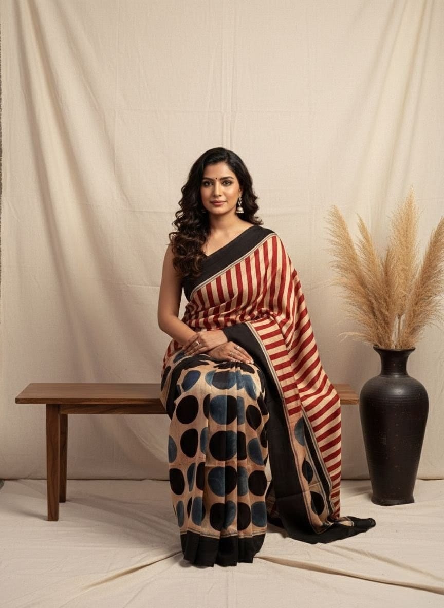 Finished Ajrakh Sarees & Fabrics